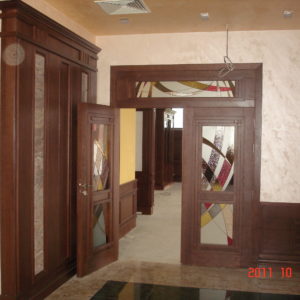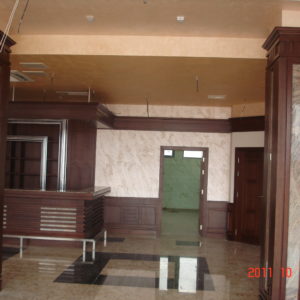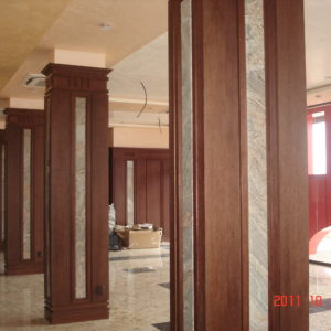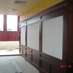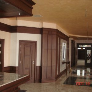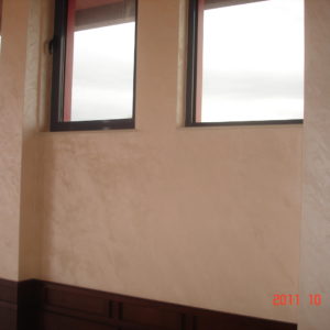 В лоби бара на рецепцията на хотел Чиирите, гр. Пловдив нанесохме мазилката Оточенто на Oikos с техника Велуто, за ефект кадифе.