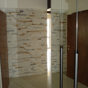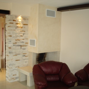 В този апартамент ММ-93 реализира няколко интересни декорации, измежду които направата на облицовка на камина с врачански камък и декорации на стените с декоративни камъни.